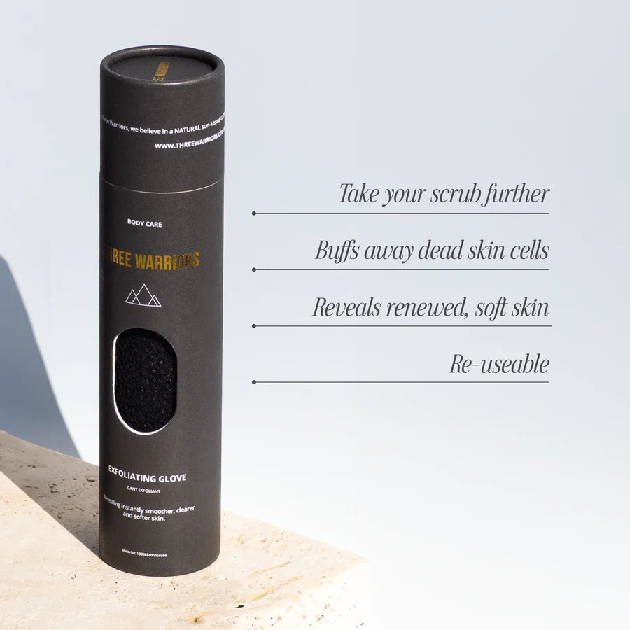 Use: Dampen skin then wet the glove and place a small amount of Three Warriors Tasmanian Sand Scrub onto it. Using the glove, glide your hand in circular motions across the length of the body from head to toe. Scrub once a week or as often as you tan. Best used before or after tanning.